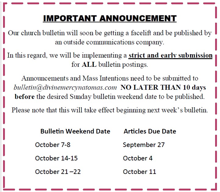 Week of October 8, 2023 – 27th Sunday in Ordinary Time Bulletin / admin Week of October 8, 2023 – 27th Sunday in Ordinary Time Read More »